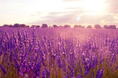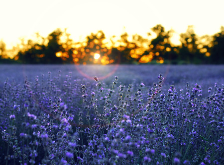 Lavender flowers at sunset in Provence, France. Vintage filter. Beautiful floral background