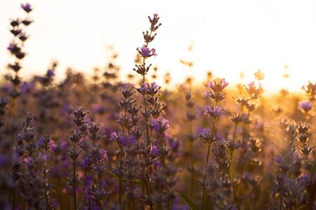 Lavender flowers at sunset in Provence, France. Macro image, shallow depth of field. Beautiful floral background