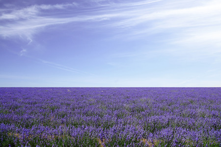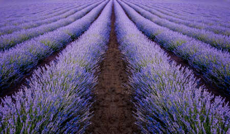 Lavender flower blooming scented fields in endless rows.