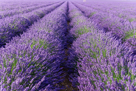 Field with rows of blooming lavender. Provence in France.