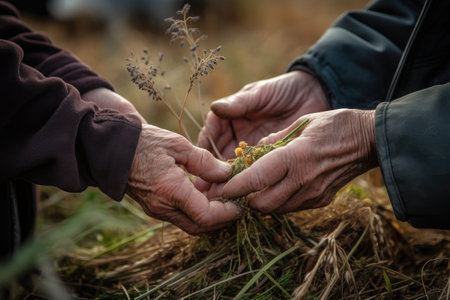 hands, community and farming for sustainability, growth or food production on the farm
