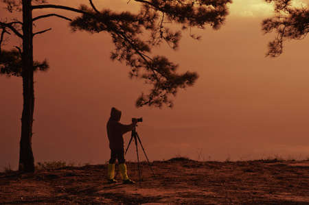 man with camera on sunset time
