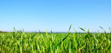 Grass as a panoramic background. Agricultural landscape in the summer time