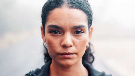 Serious young woman with intense expression