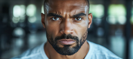 A close up of a black man with dark eyes and hair, AI