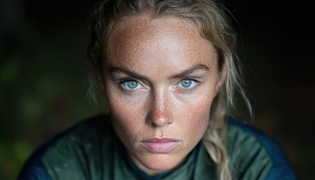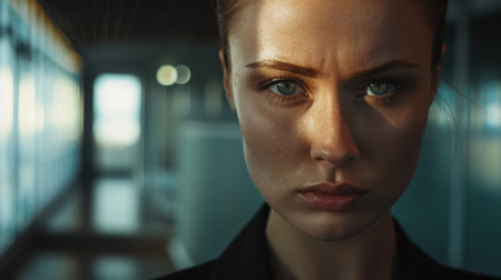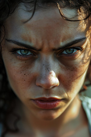 Intense gaze of a determined woman