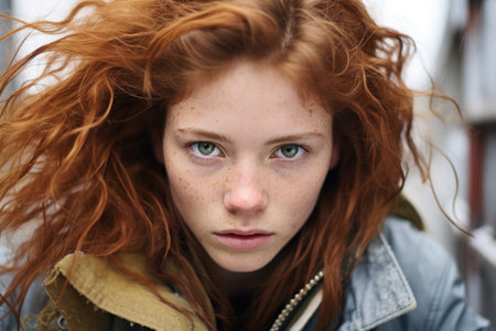 a woman with red hair and freckles