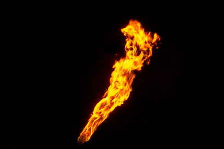 Detail of a flame produced by the burner of a hot air balloon. The burner generates the hot air that allows hot air balloons to fly.