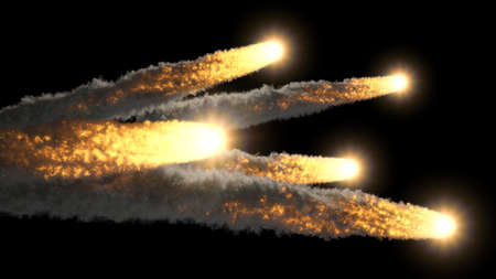 3D illustration of A meteor shower falls to the ground. 5K realistic science fiction art.