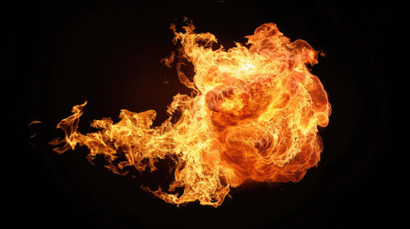 Dramatic fireball with intense flames and heat, isolated on black backdrop
