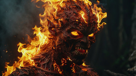 Blazing Fire monster. Evil horror flame. Generate Ai
