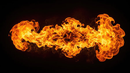Vibrant fire texture against a deep black background creating an intense visual effect