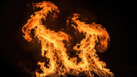 Intense vibrant flames dance across a dark backdrop, creating an abstract representation of energy and warmth, perfect for artistic projects and visual concepts.