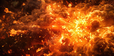Detailed capture of an explosion in motion, showcasing the fiery bursts against a black backdrop