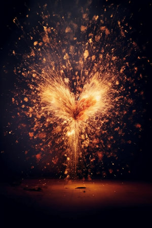 Heart shaped fireworks with bokeh background. Valentines day concept