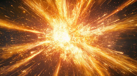 This image showcases a brilliant explosion of radiant light with streaking rays and particles, set against a dark backdrop, evoking a celestial or cosmic phenomenon with a striking visual impact. AI generated image
