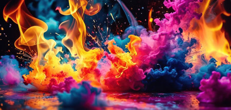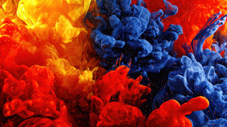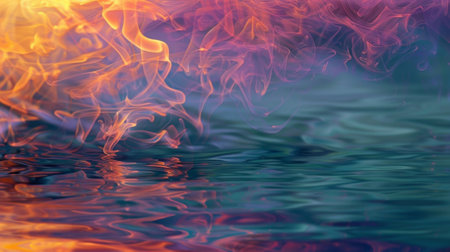 Colorful smoke in the water. Abstract background. Fire and smoke. Colorful Smoke Abstract Art - Vibrant Digital Wallpaper & Illustration for Creative Designs.