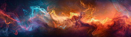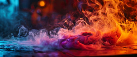 Panorama of mesmerizing fusion of swirling smoke and fire, creating an abstract composition that ignites the imagination