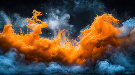 Colorful smoke explosion with orange and blue hues, abstract art concept