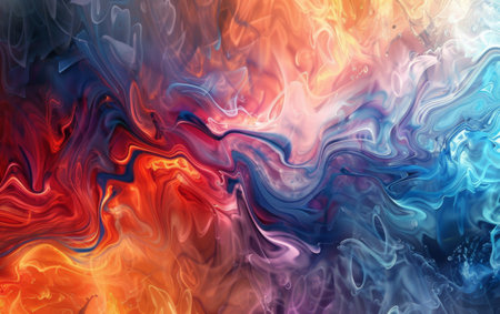 Colorful swirls of red, orange, pink, and blue blend harmoniously, creating an energetic and emotive atmosphere that captivates the viewer and ignites the imagination.