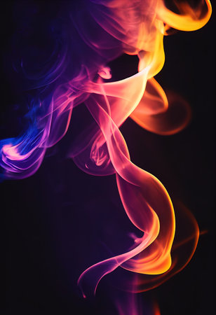 Experience the enchanting blend of vibrant flames and swirling smoke captured in abstract art
