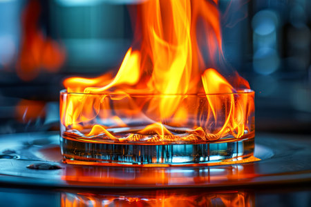 Intense Flames Engulfing a Metal Dish in a Controlled Scientific Experiment on a Laboratory Bench AI Generative