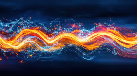 Abstract Fiery Icy Energy Streams Dark Background Digital Art