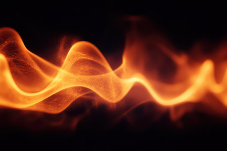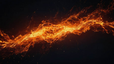 An abstract representation of vibrant energy in fiery flames, displaying a captivating interplay of light and darkness, evoking warmth and intensity.