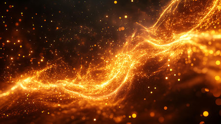 Abstract Orange Gold Glitter Wave Dark Background Design Art Shiny Light Motion Energy