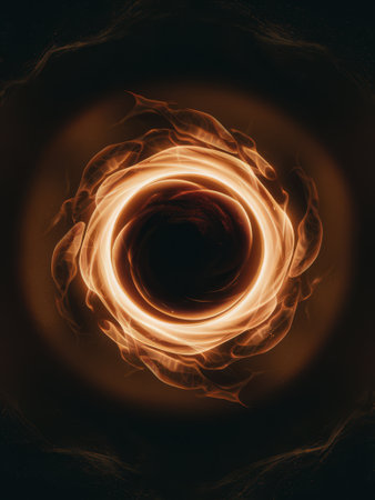 A captivating image showcasing a detailed ring of fire with vibrant, intense flames against a stark, dark background, creating a visually striking and mesmerizing effect conveying energy and passion. AI generated image