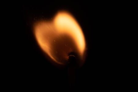Burning match on a black background, its vibrant orange glow representing warmth, ignition, and potential energy.