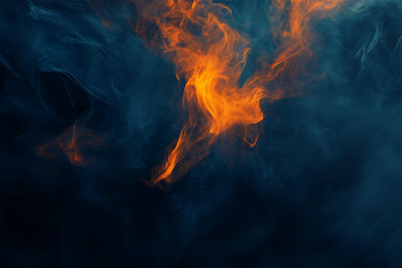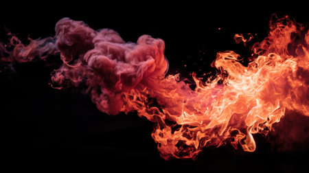 Captivating visual of vibrant flames and smoke intertwining against a dark background, perfect for creative projects needing energy and drama.