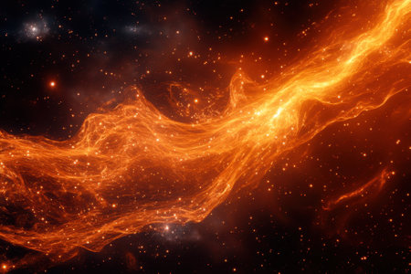 A fiery nebula swirls through the vast expanse of space, its glowing tendrils reaching out amidst a backdrop of distant stars.
