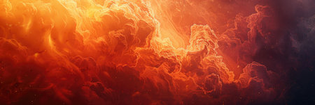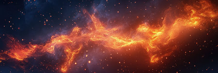 Fiery fire in space, panoramic view. Abstract background