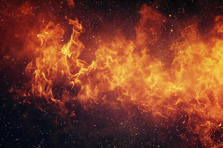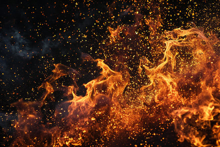 Vibrant fire texture against a deep black background creating an intense visual effect
