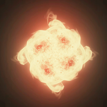 A luminous circular form pulsates with fiery hues and intricate geometric patterns, illustrating dynamic data flow and high-tech energy visuals.