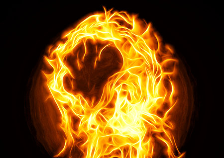 Red spiral on a black night background. Heart drawn by fire on a dark background. Love, romantic and festival concept