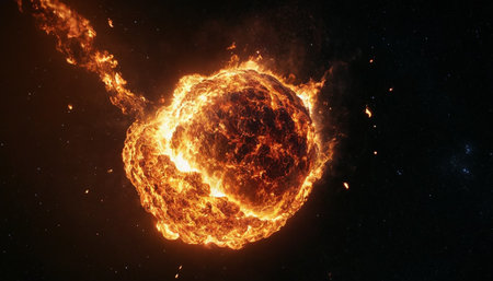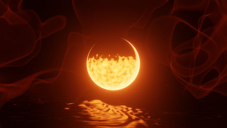 Blazing Sphere: A dramatic depiction of a celestial orb engulfed in fiery energy and intense heat.