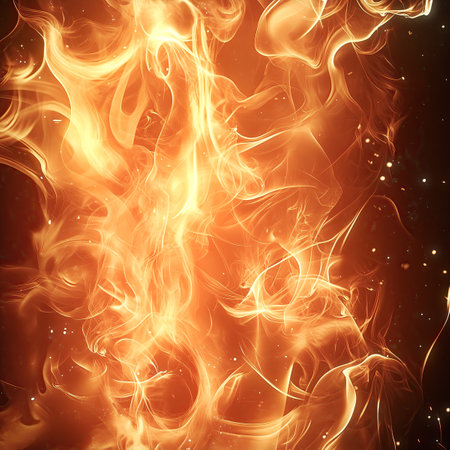 Vibrant flames and swirling smoke create an intense abstract background ideal for various media uses