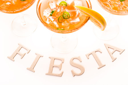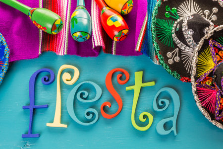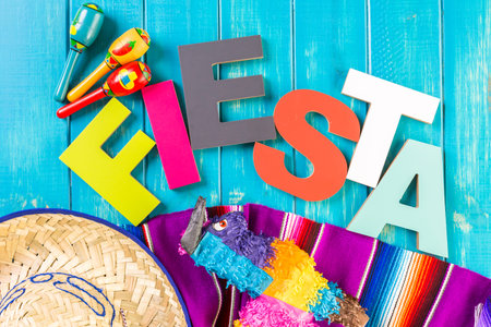 The inscription Fiesta with decorations on a white background