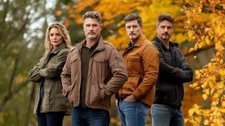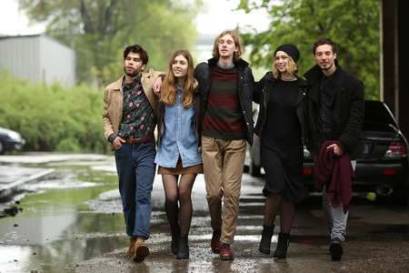 Nothing like some 70s style. A studio shot of a group of people standing together while clad in retro 70s wear.