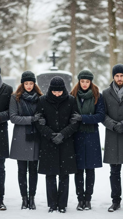 Happy multiracial friends looking at camera wearing winter clothes outdoors.