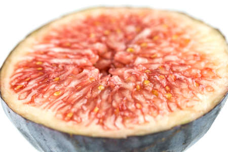 Fig halves. Ripe fruit pulp. Close up. Pink background.