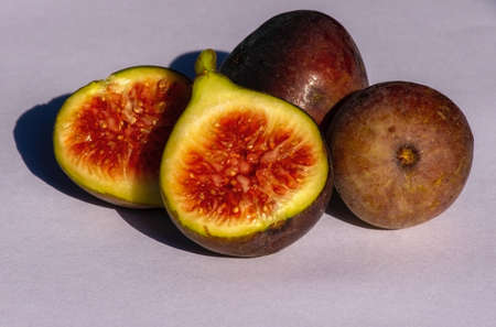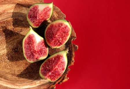 Two figs minimalism closeup. One fig in a cut on corner parts.