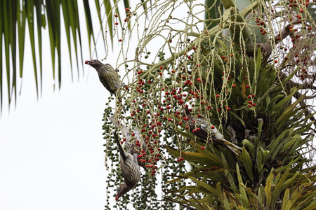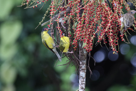Group of Blue-crowned Bulbul (Olive-backed Bulbul) in nature