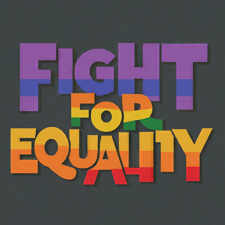 A clenched fist raised against a rainbow flag, representing unity and the fight for equal rights, symbolic of strength, hope, and the LGBTQ community's pursuit of freedom and justice