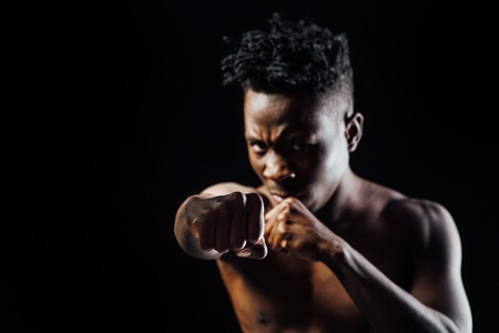 Detail of the Fist of a Male Kickboxer Throwing a Punch