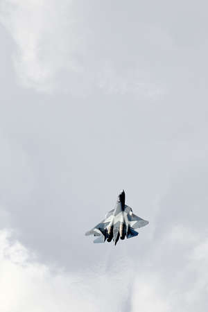 Moscow Russia Zhukovsky Airfield 25 July 2021: Demonstration of the latest Russian SU-57 fighterof the international aerospace salon MAKS-2021.