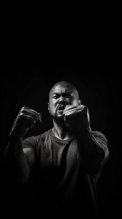 A man is making a fist and his hand is raised. Concept of anger and aggression
