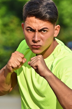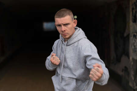 the guy is fighting. The first close-up. An evil brawler. The man is isolated